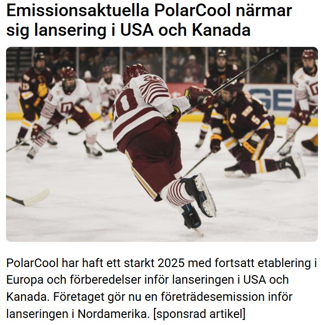 PolarCool har haft ett starkt 2025 med fortsatt etablering i Europa och förberedelser inför lanseringen i USA och Kanada. Företaget gör nu en företrädesemission inför lanseringen i Nordamerika. [sponsrad artikel]