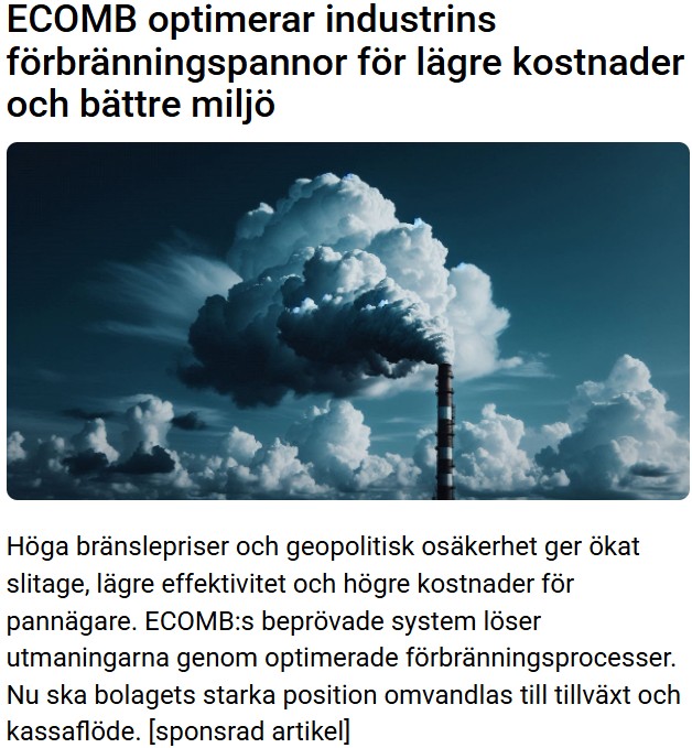 Höga bränslepriser och geopolitisk osäkerhet ger ökat slitage, lägre effektivitet och högre kostnader för pannägare. ECOMB:s beprövade system löser utmaningarna genom optimerade förbränningsprocesser. Nu ska bolagets starka position omvandlas till tillväxt och kassaflöde. [sponsrad artikel]