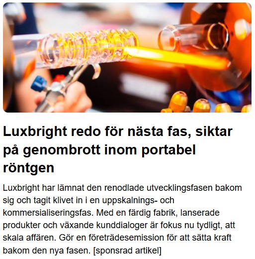 BBS-Bioactive Bone Substitutes – Ett finskt hälsotekniskt företag som har utvecklat och konstruerat ett innovativt bioaktivt bentransplantatssubstitut för läkning av komplicerade benskador och andra komplikationer vid benläkning. Gör just nu en nyemission och noterar sig sedan på First North i både Stockholm och Helsingfors den 28 februari.